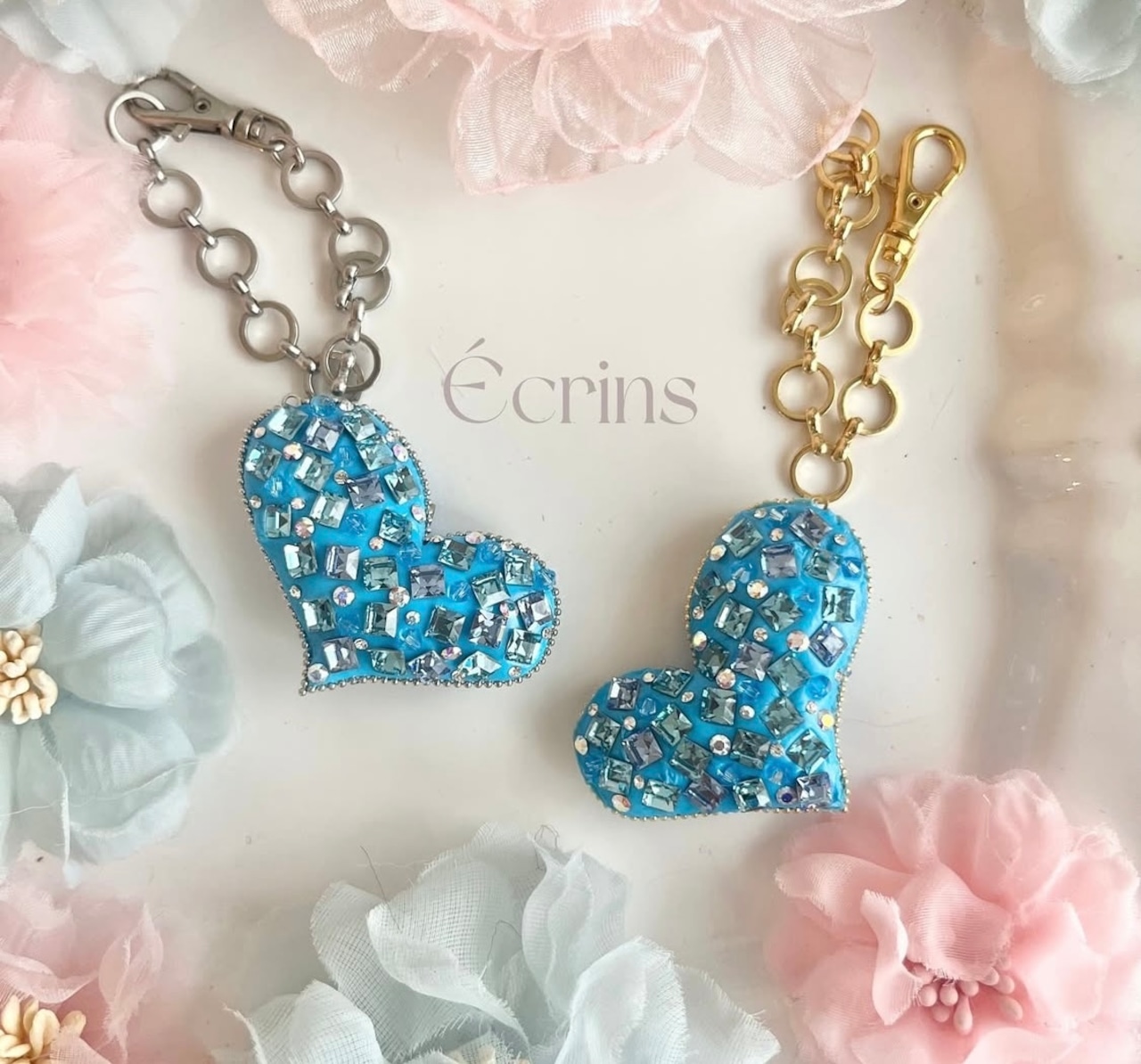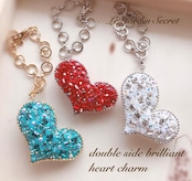 両面キラキラハートのバッグチャームを作りました。どちらもキラキラ可愛らしく輝きます。
